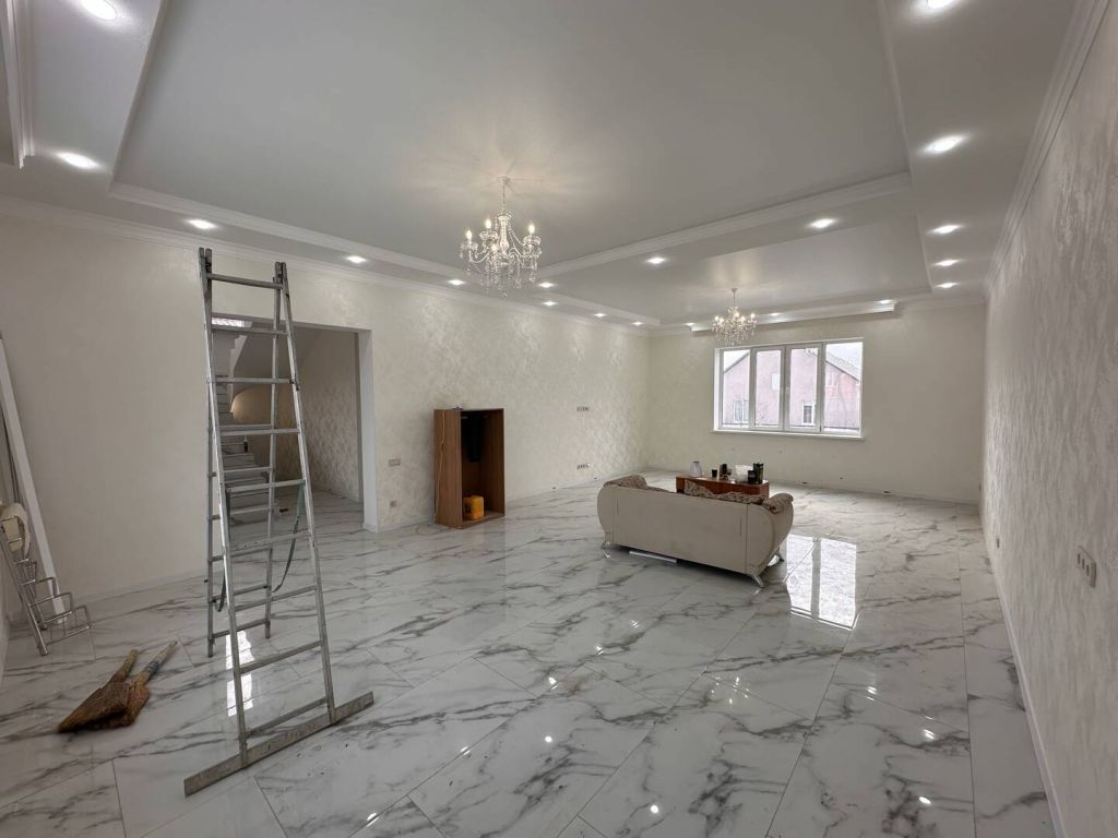 | Продается частный 2-х этажный дом, на земельном участке 6 соток.Площадь дома 200 кв.м. + 50 кв.м цокольный этаж ✅1 этаж - прихожая, санузел, кухня гостиная 36 кв.м., спальня.✅2 этаж - гардеробная, санузел, 4 спальни.✅Цокольный этаж, вход с улицы, пол кафельная плитка, стены с отделкой, сухое помещение.✅Фасад участка 22м, высокий забор, ворота.В доме сделан качественный ремонт: напольное покрытие - керамогранит, теплые полы по всему периметру первого этажа и второго. Стены обои. Свет во всем доме. На первом и втором этаже железо-бетонное перекрытие.Развивающийся микро-район, рядом новая школа, садик, продуктовые магазины. | |